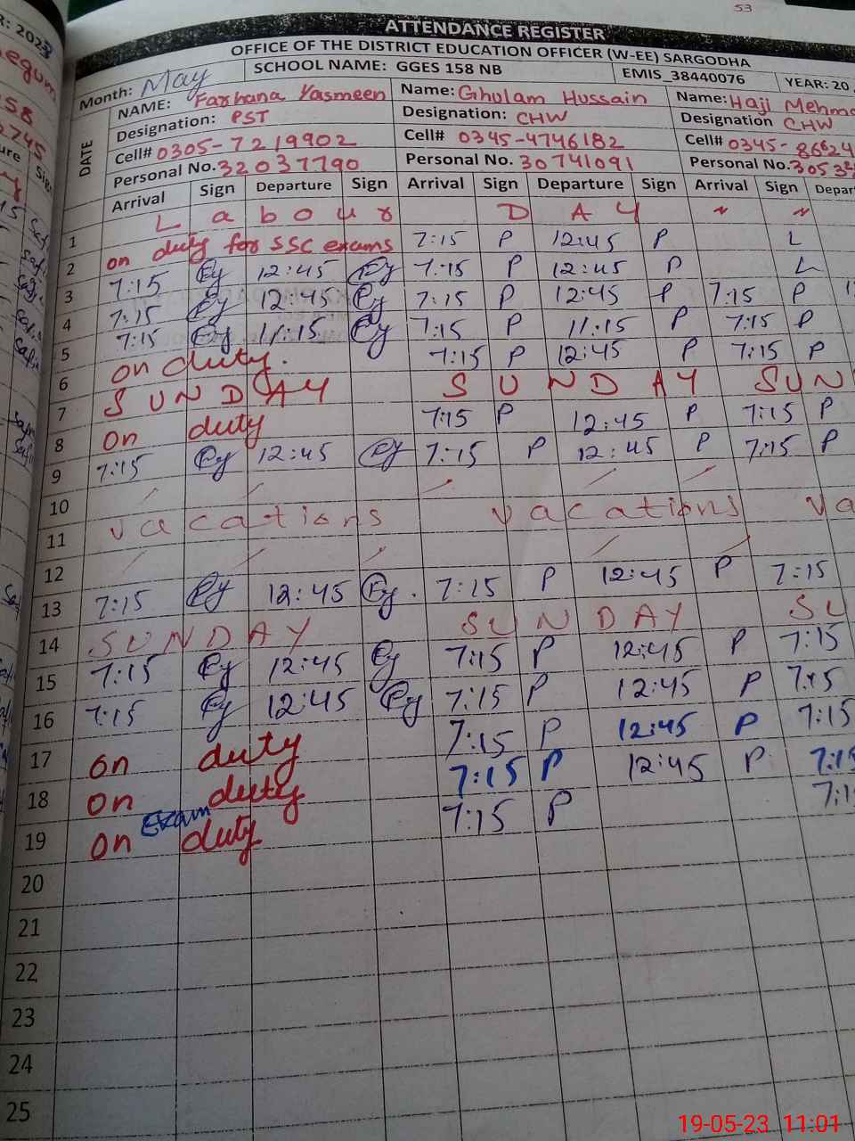 | 38**** | Fa**** Ya**** | ESE | Contract | 0 | 0 | 0 | 0 | 0 | 0 | 0 | 0 | 0 | Exam Duty |