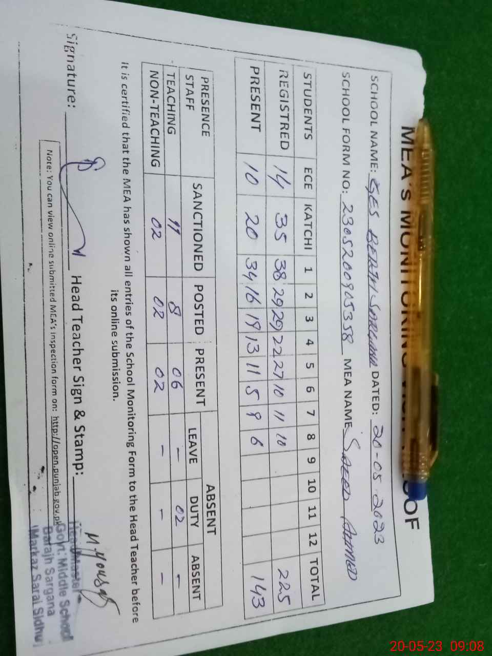 | Certified that this School was Inspected by the Undersigned MEA/DMO Today and the Information Stated Above is as Per Record. | |||||