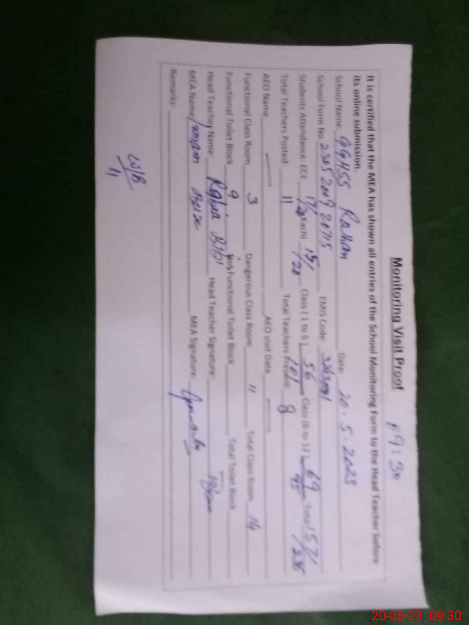 | EMIS Code: 32430001 | Name of School: GGHSS ROJHAN | |||