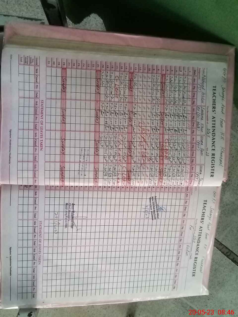 | Remarks (Use Separate Page if Required): No LND practice of class three in school NSB register not maintained after December 2022 | |||||