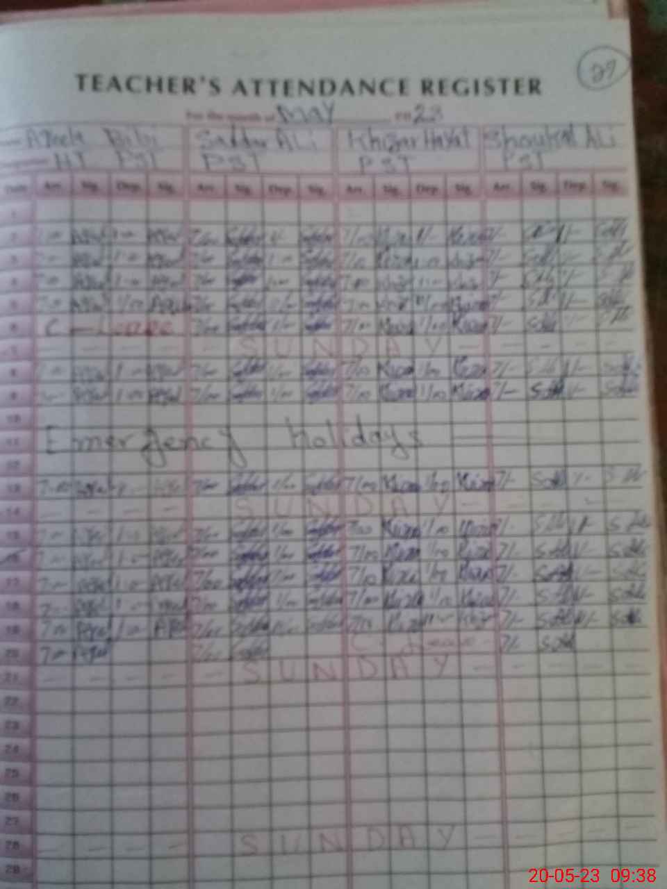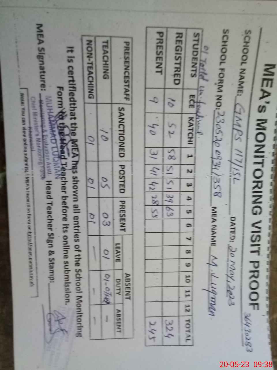 | Attendance Register | Head Teacher | MEA with School | Visit Proof |