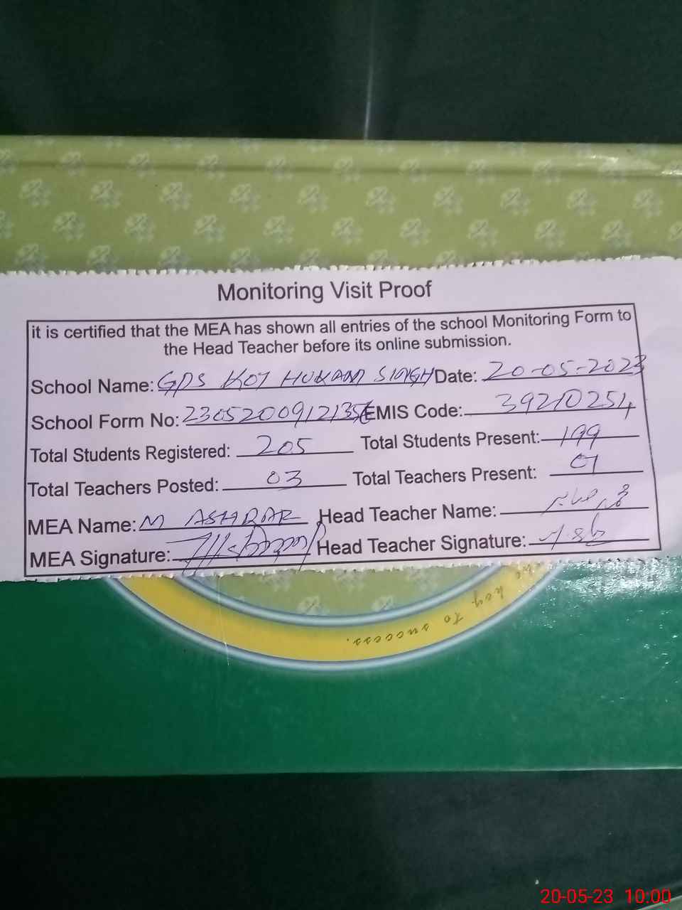 | EMIS Code: 39210254 | Name of School: GPS KOT HUKAM SINGH | |||
