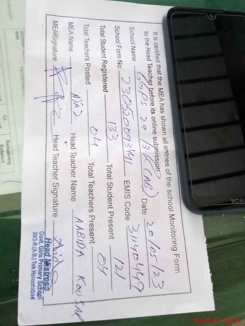 | EMIS Code: 31140449 | Name of School: GGPS CHAK 29/3-R (AB) | |||