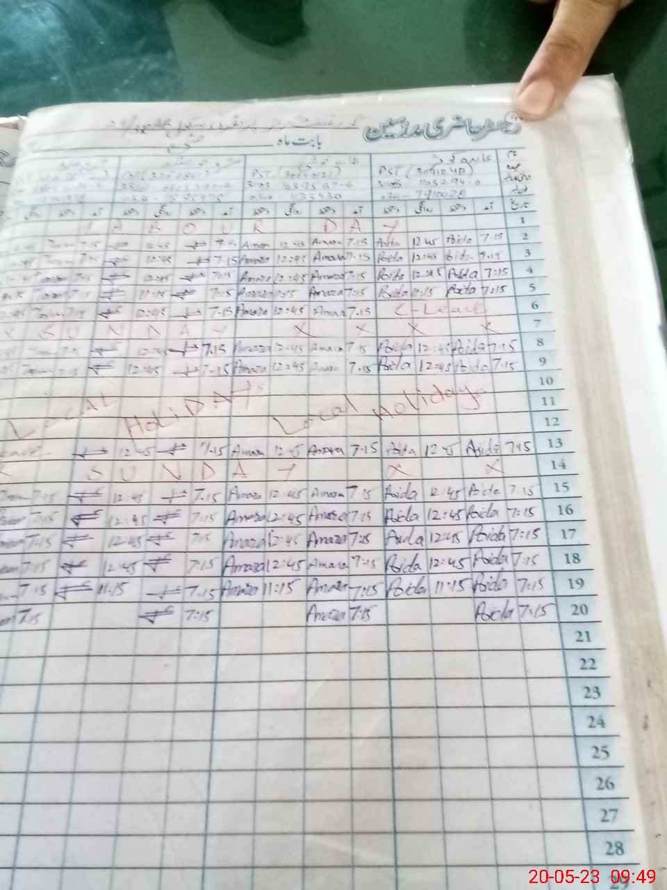 | CNIC | Full Name | Designation | R/C | Absence During Last Calender Month |