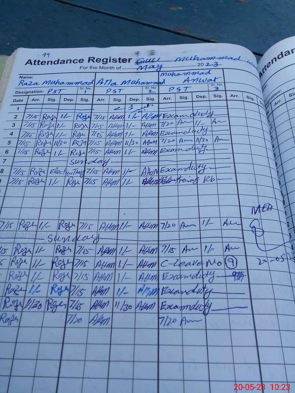 | CNIC | Full Name | Designation | R/C | Absence During Last Calender Month |