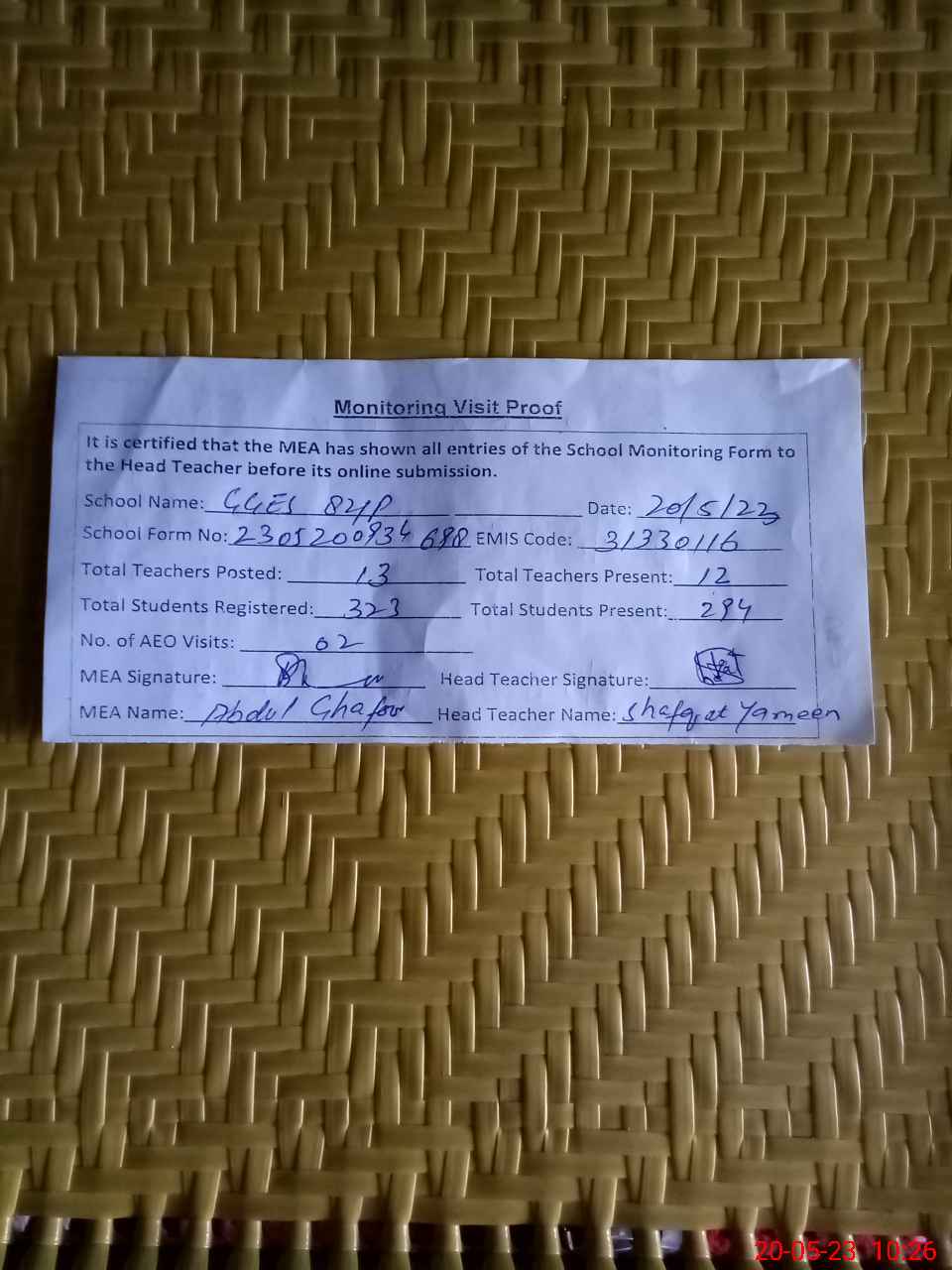 | Certified that this School was Inspected by the Undersigned MEA/DMO Today and the Information Stated Above is as Per Record. | |||||