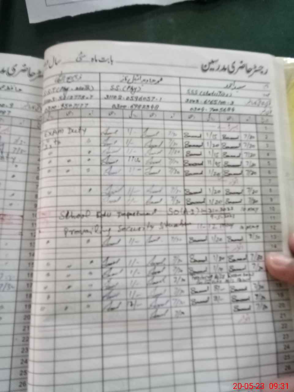 | CNIC | Full Name | Designation | R/C | Absence During Last Calender Month |