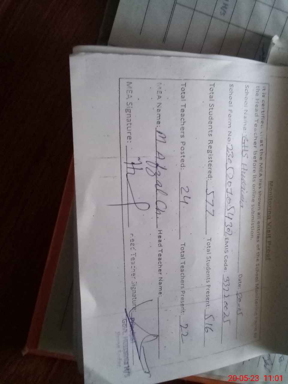 | EMIS Code: 33220025 | Name of School: GHS HUSSAINIA, JHANG | |||