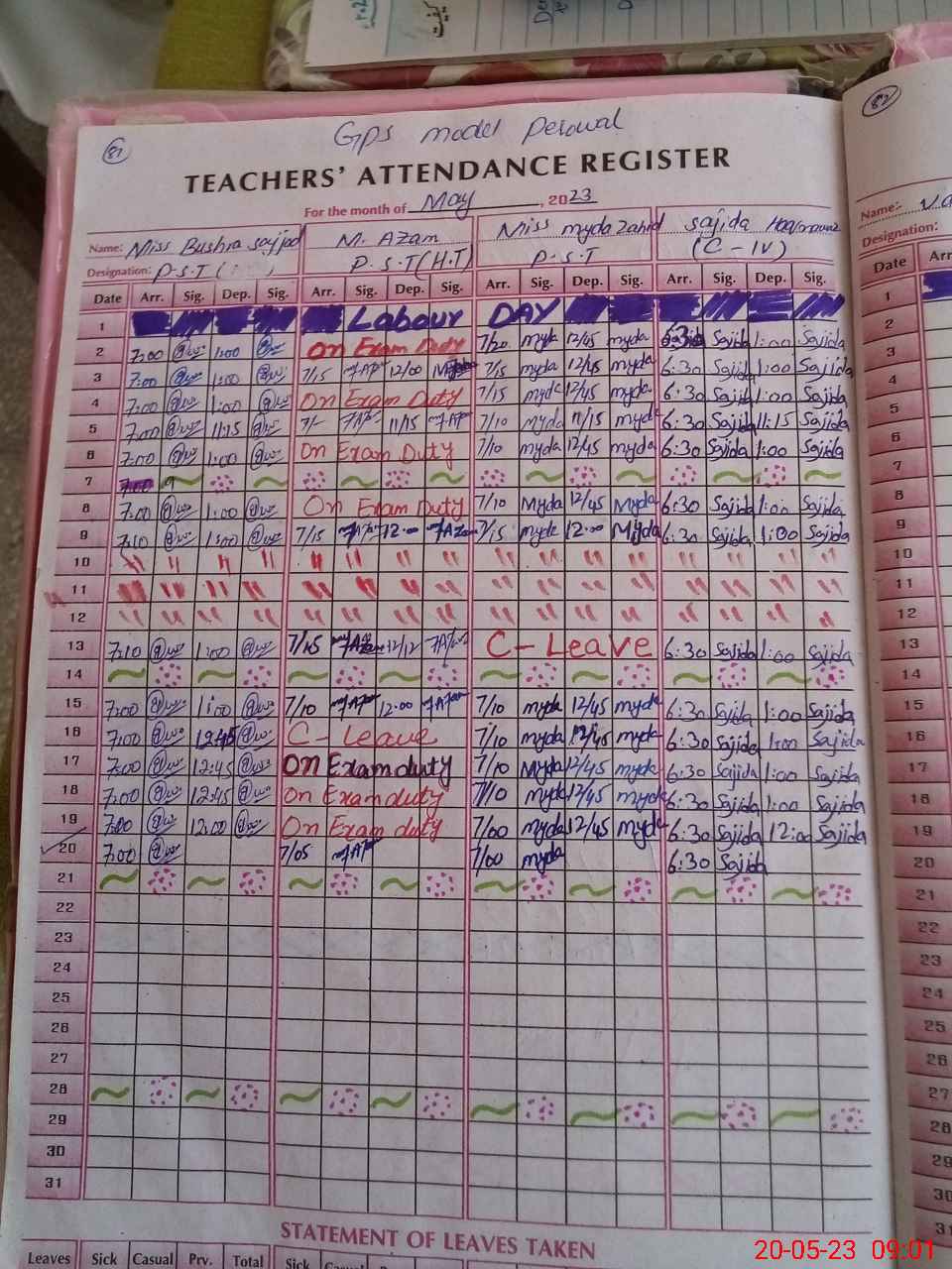 | Leave | Duty | Absent | Maternity | Medical | Ex- Pak |