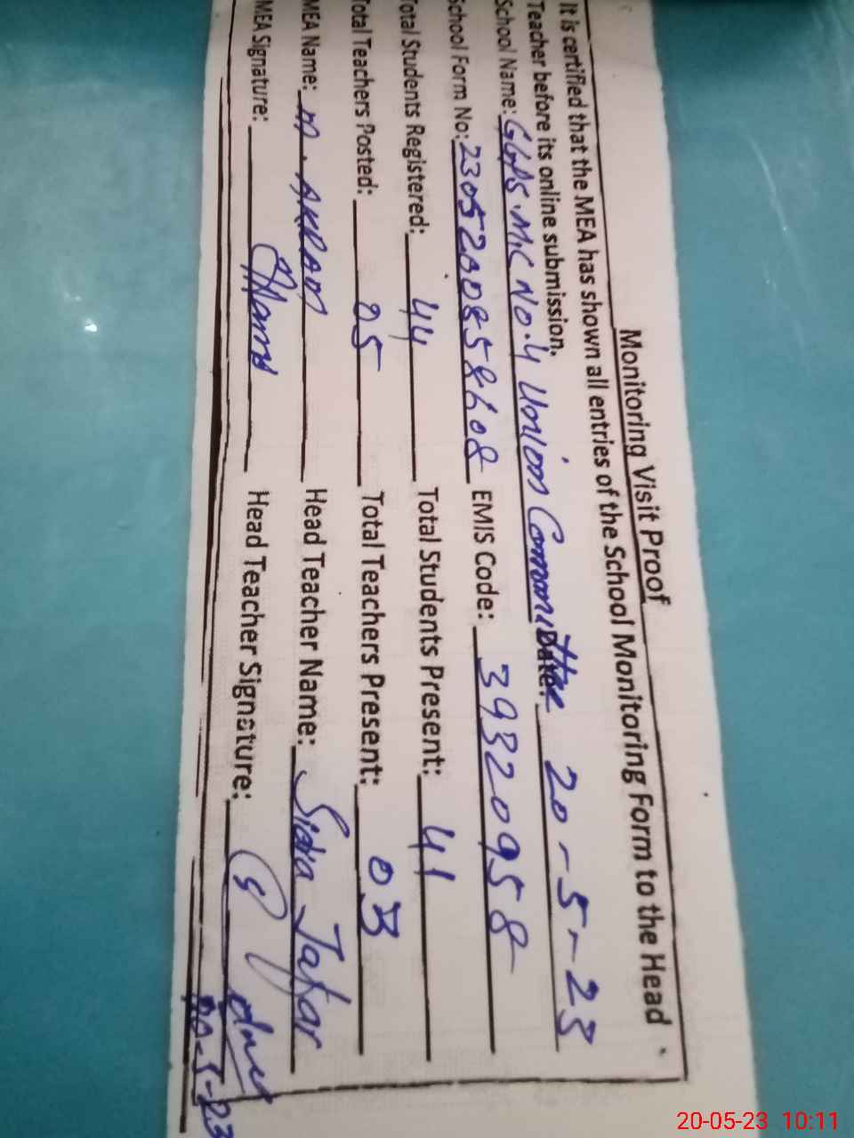 | EMIS Code: 39320958 | Name of School: GGPS MC NO. 4 UNION COMMITTEE | |||