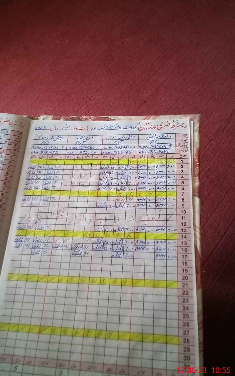 | Name: Ab**** Hy**** Designation: (School Headmaster's/Headmistress's) PST Phone/Cell Number: 03**** |