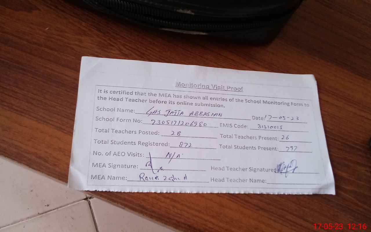 | EMIS Code: 31310015 | Name of School: GHS JAJJA ABBASIAN | |||