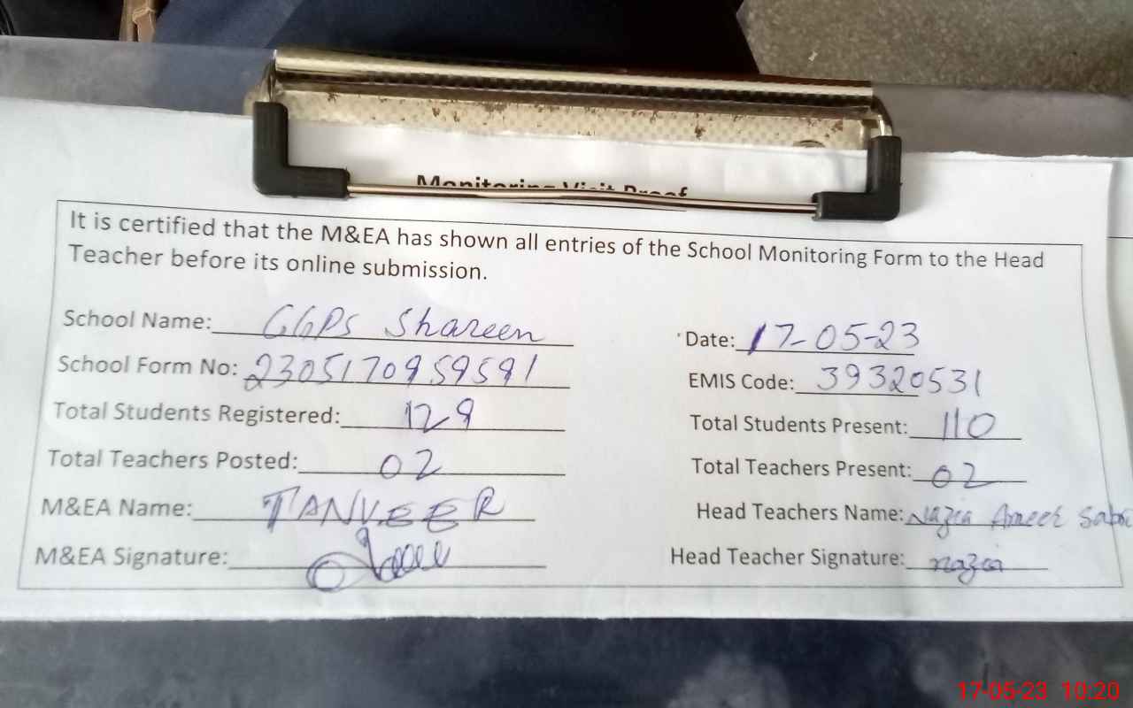 | EMIS Code: 39320531 | Name of School: GGPS SHAREEN | |||