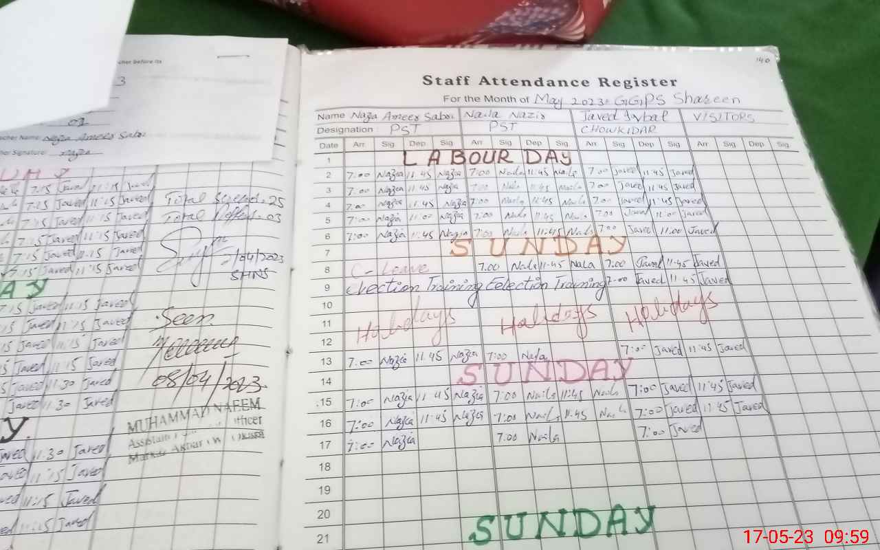 | CNIC | Full Name | Designation | R/C | Absence During Last Calender Month |