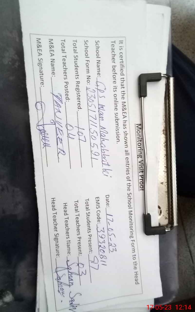 | Attendance Register | Head Teacher | MEA with School | Visit Proof |