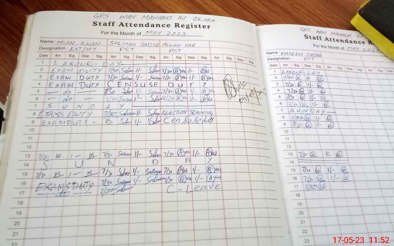 | 35**** | Mi**** Kh**** | Regular | 0 | 6 | 0 | 0 | 0 | 0 | 0 | 0 | 0 | Exam Duty | |