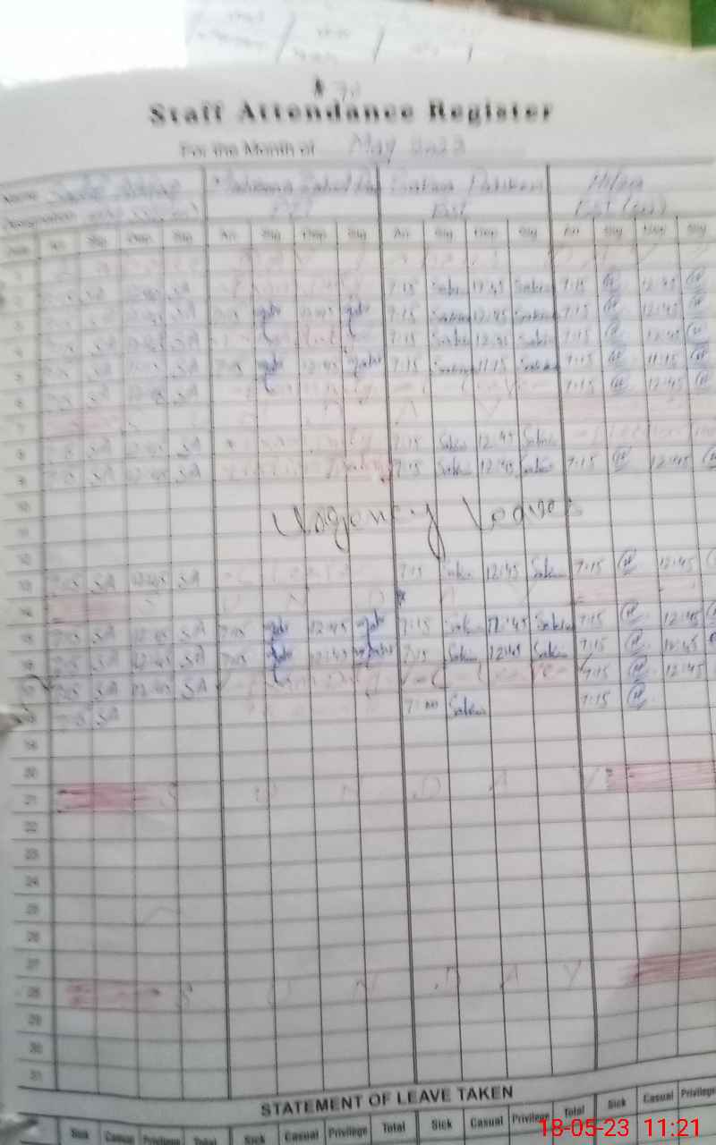 | Name: Sa**** Pa**** Designation: (School Headmaster's/Headmistress's) EST Arts Phone/Cell Number: 03**** |