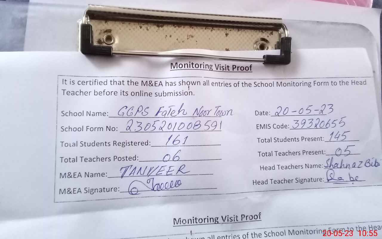 | EMIS Code: 39320655 | Name of School: GGPS FATEH NOOR TOWN | |||