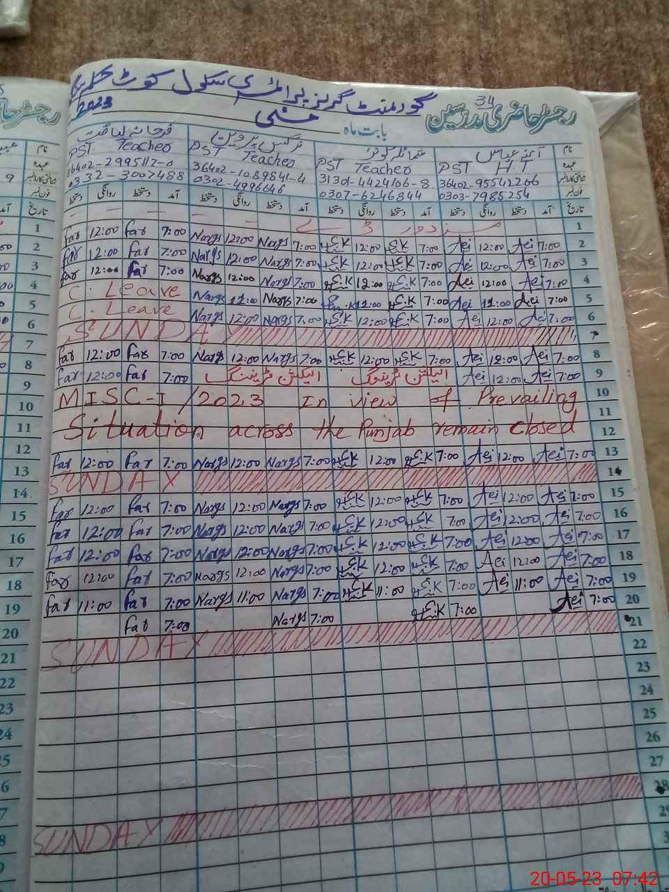 | Name: FA**** LI**** Designation: (School Headmaster's/Headmistress's) PST Phone/Cell Number: 03**** |
