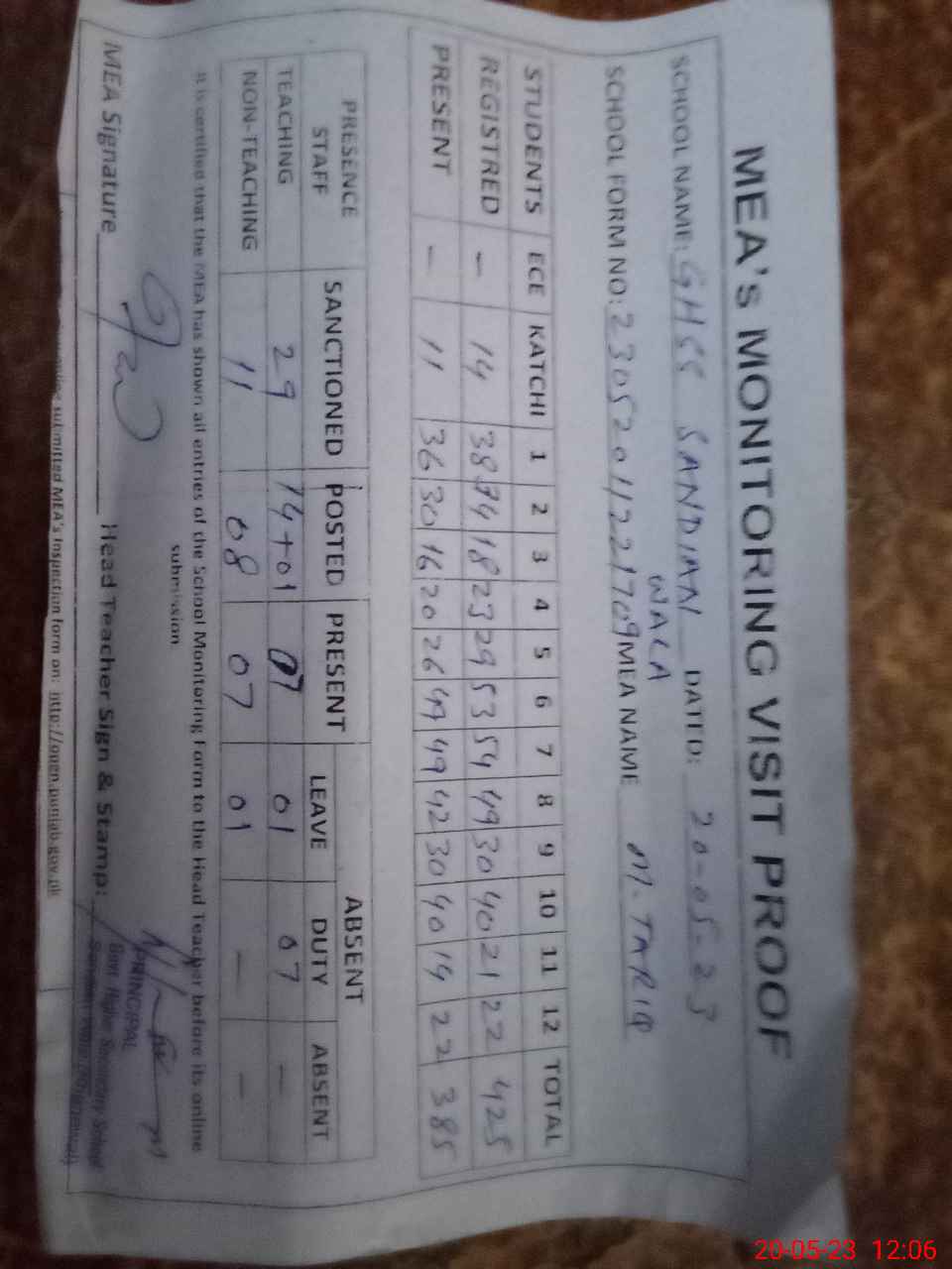 | EMIS Code: 36410015 | Name of School: GHSS SANDIAN WALA, KHANEWAL | |||