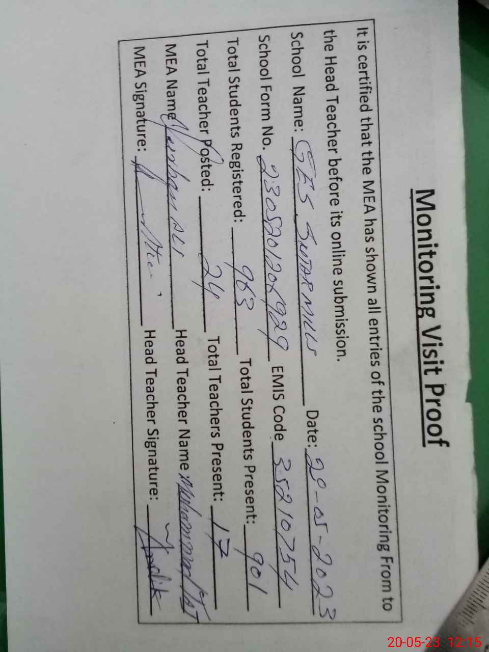 | EMIS Code: 35210754 | Name of School: GHS SUTAR MILLS TEHSIL SHALIMAR (Newly upgraded) | |||