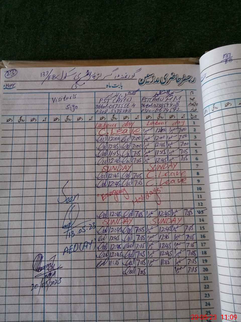 | Name: SU**** MA**** Designation: (School Headmaster's/Headmistress's) PST Phone/Cell Number: 03**** |