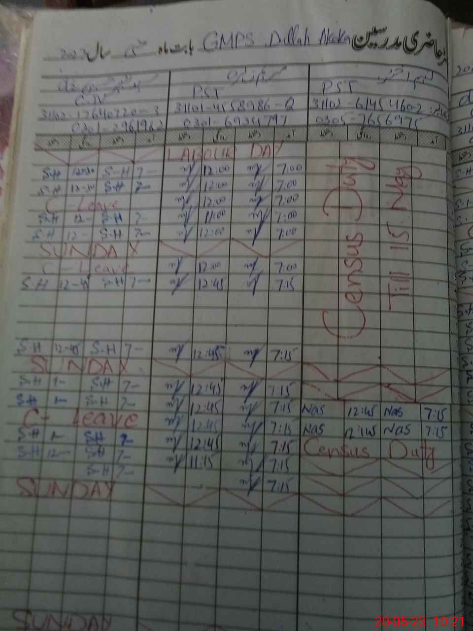 | CNIC | Full Name | Designation | R/C | Absence During Last Calender Month |