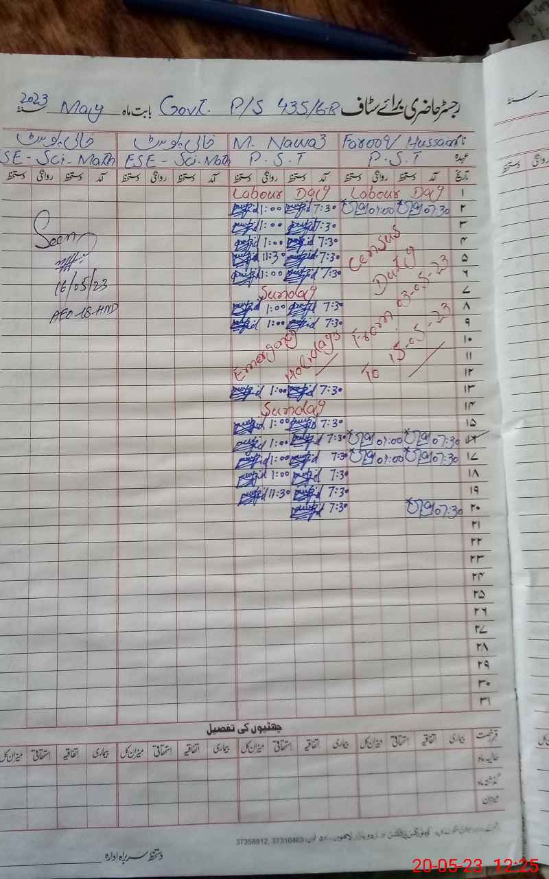 | CNIC | Full Name | Designation | R/C | Absence During Last Calender Month |