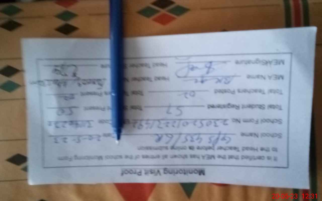 | Attendance Register | Head Teacher | MEA with School | Visit Proof |