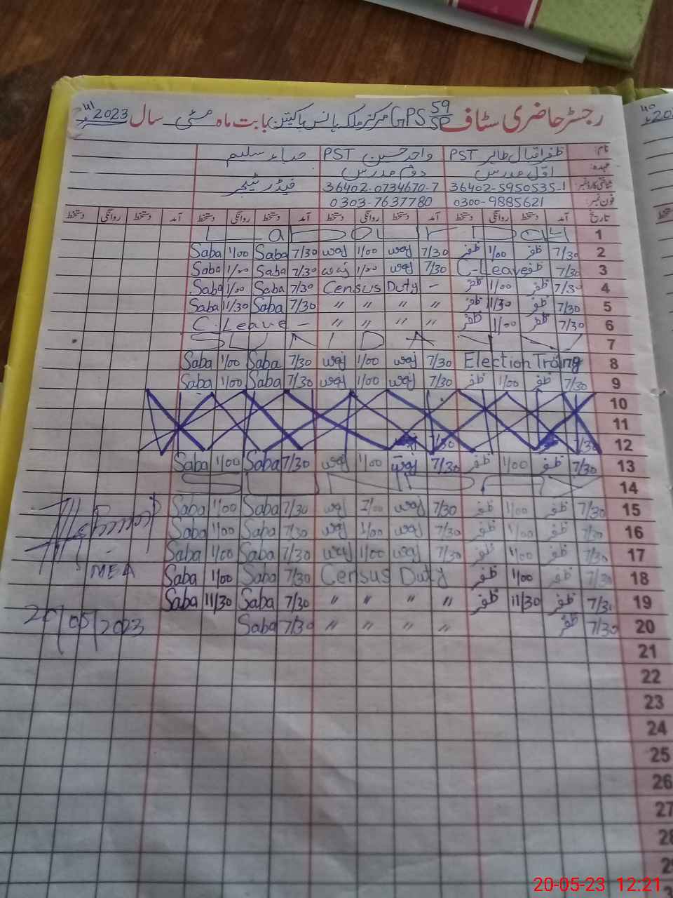 | Name: ZA**** IQ**** TA**** Designation: (School Headmaster's/Headmistress's) PST Phone/Cell Number: 03**** |