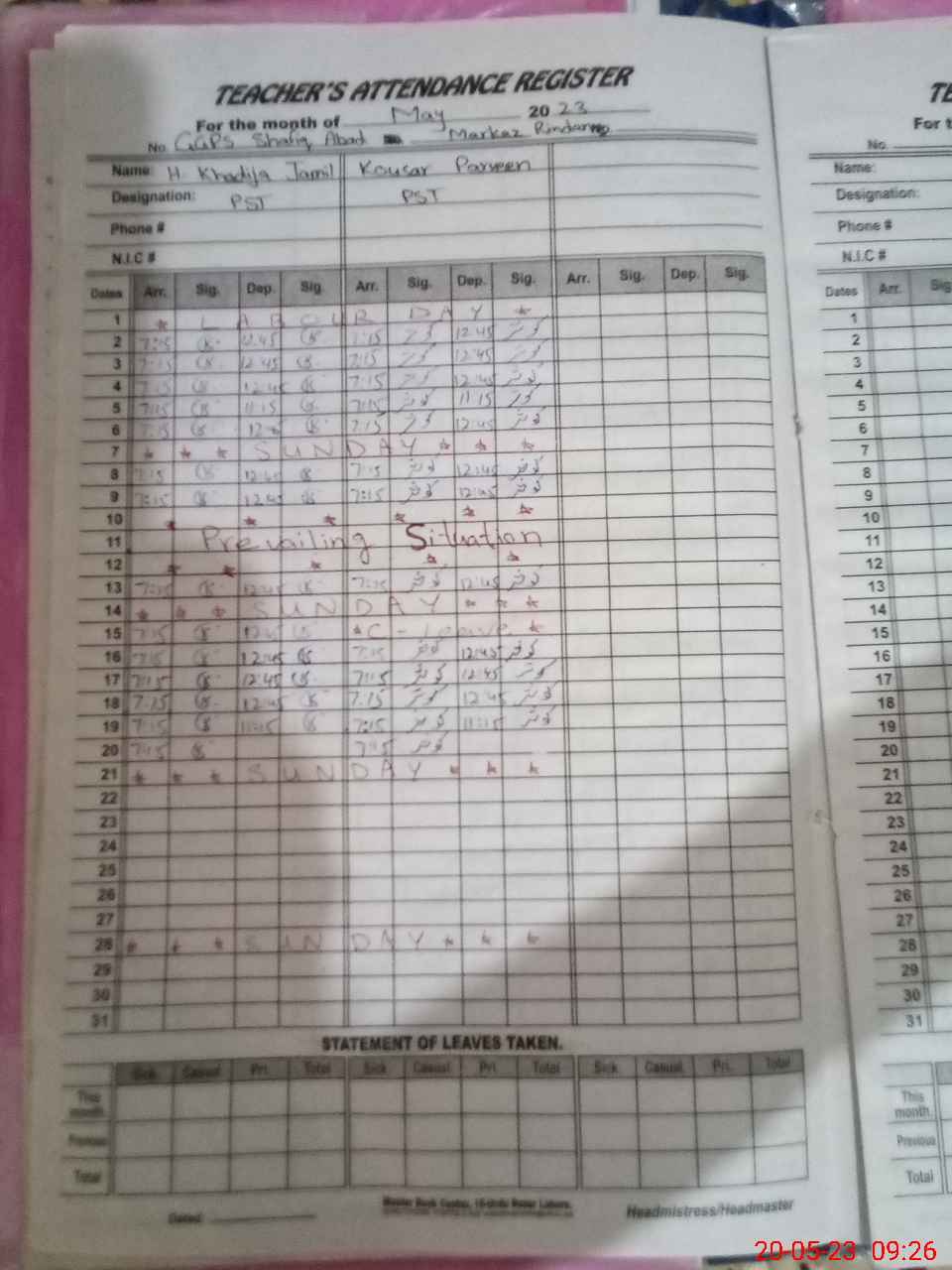 | Name: Ha**** Kh**** Ja**** Designation: (School Headmaster's/Headmistress's) PST Phone/Cell Number: 03**** |