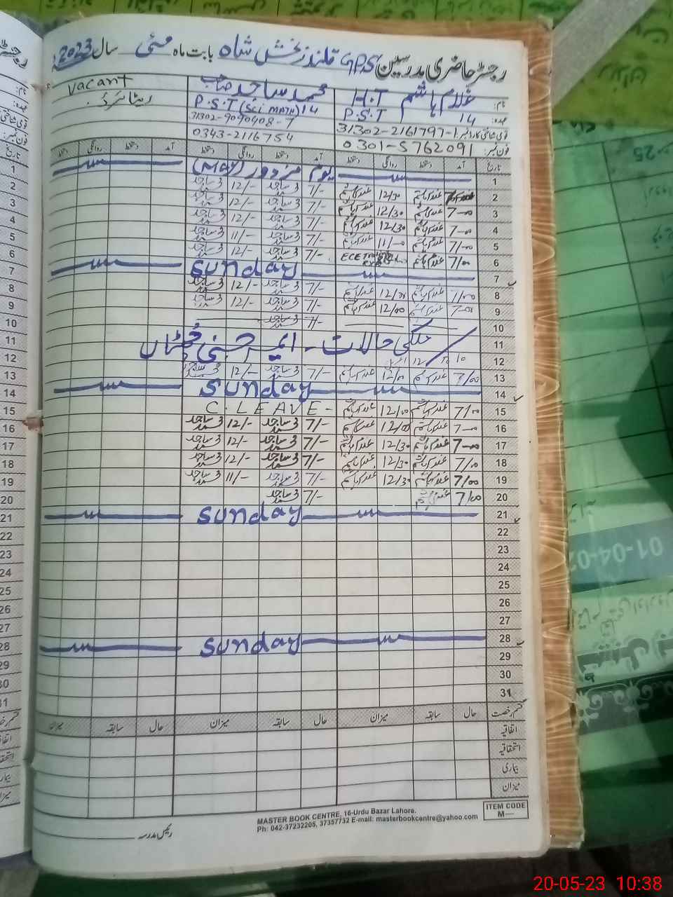 | Name: GH**** HA**** Designation: (School Headmaster's/Headmistress's) PST/PTC/JV Phone/Cell Number: 03**** |