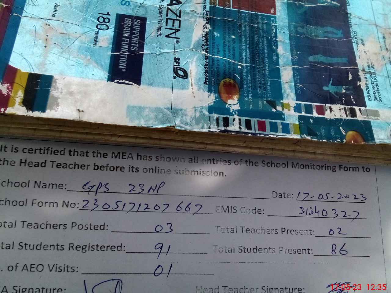 | EMIS Code: 31340327 | Name of School: GPS CHAK NO 23/NP | |||