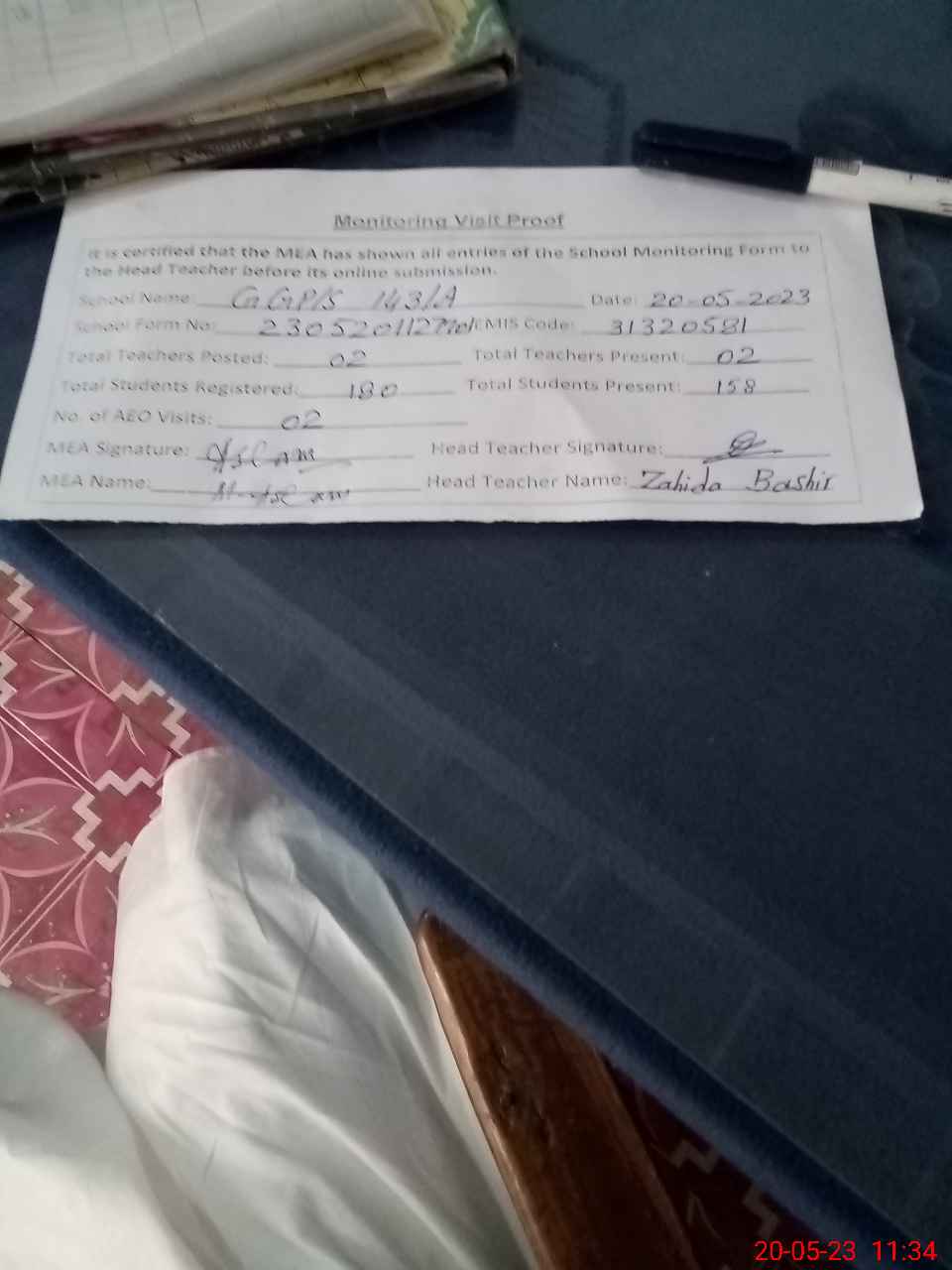 | Attendance Register | Head Teacher | MEA with School | Visit Proof |