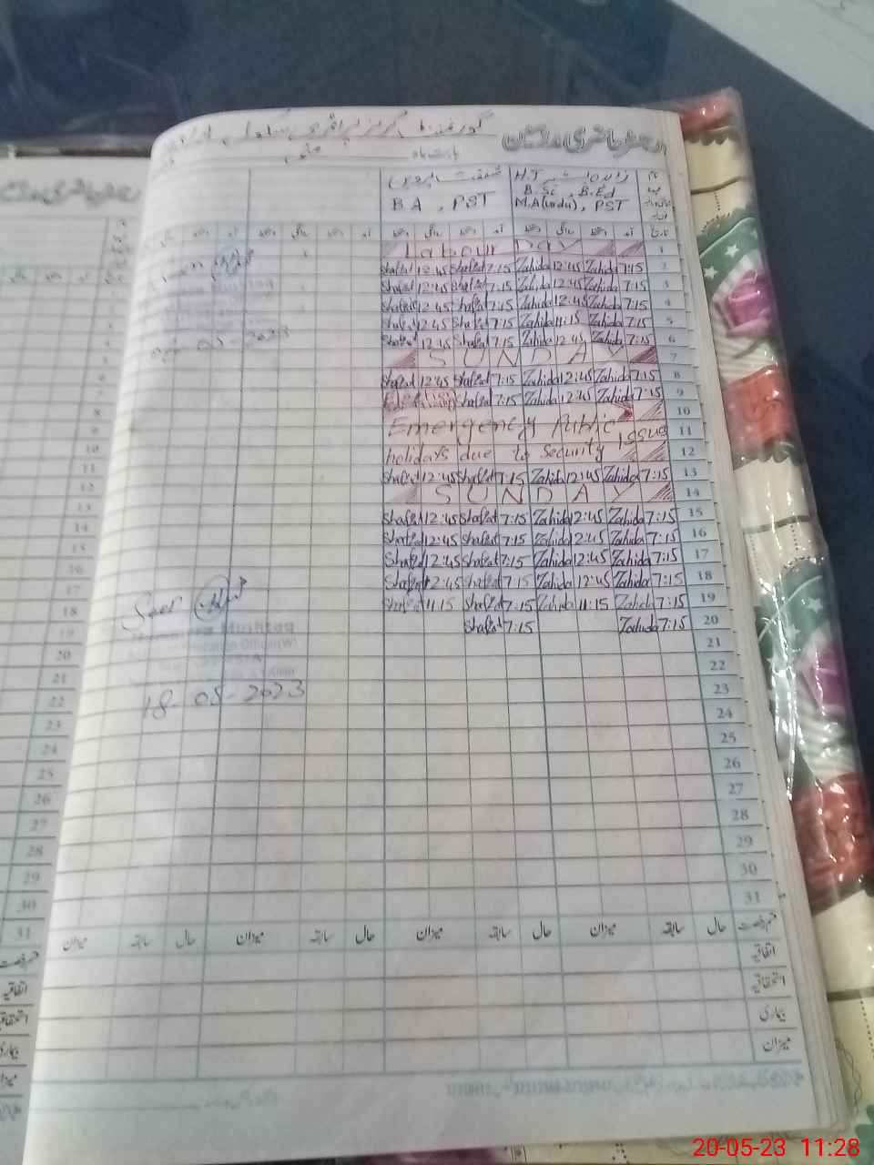 | Name: Za**** Ba**** Designation: (School Headmaster's/Headmistress's) PST Phone/Cell Number: 03**** |