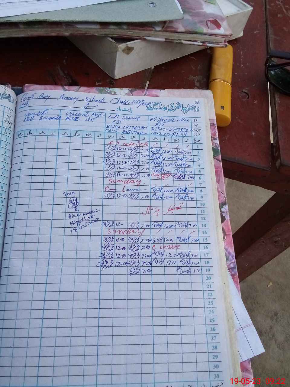 | Name: Mu**** In**** Ul**** Designation: (School Headmaster's/Headmistress's) PST (Sci Math) Phone/Cell Number: 03**** |