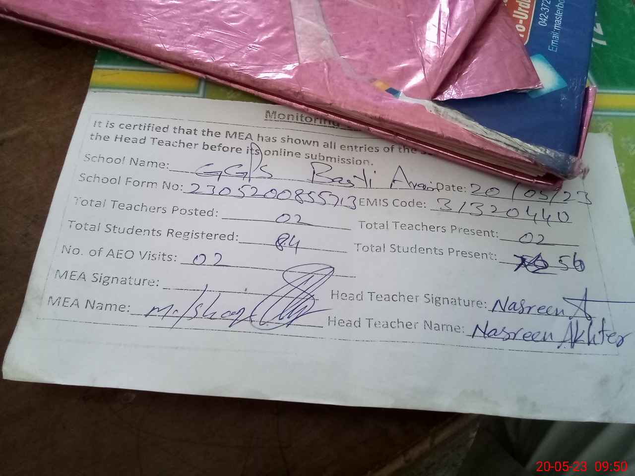 | EMIS Code: 31320440 | Name of School: GGPS BASTI ARAIN | |||