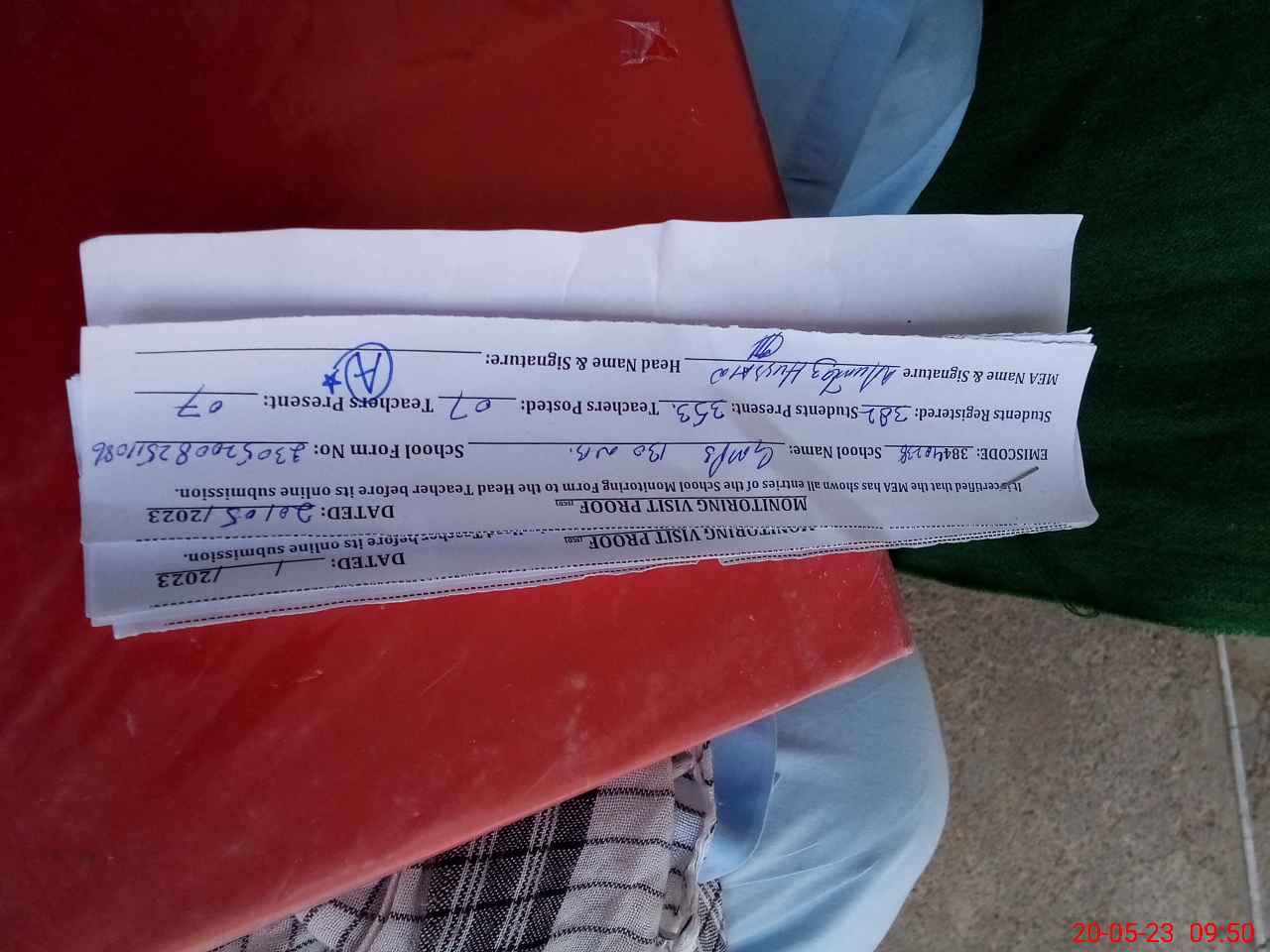 | Attendance Register | Head Teacher | MEA with School | Visit Proof |
