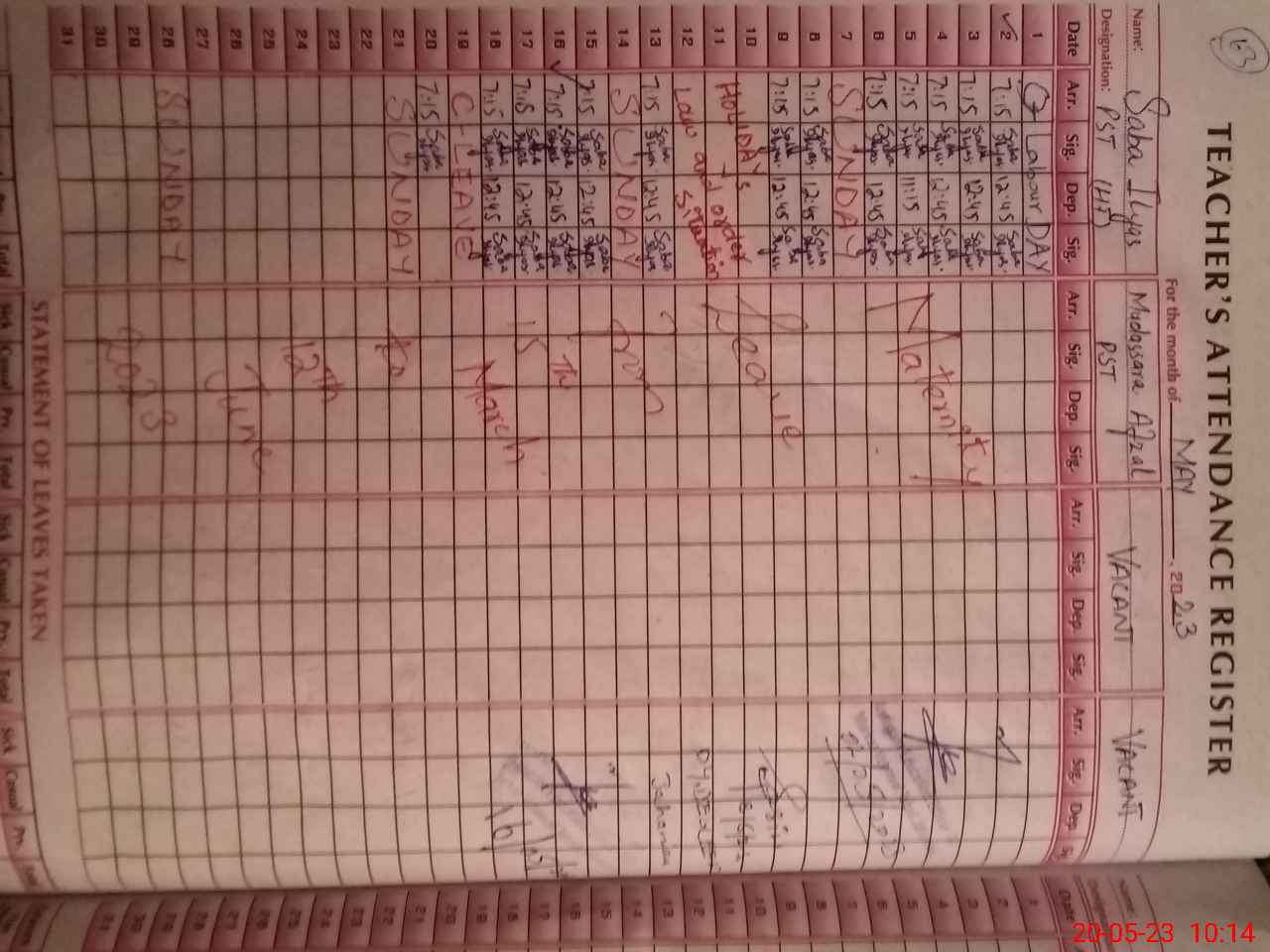 | Name: Sa**** Il**** Designation: (School Headmaster's/Headmistress's) ESE (SCI-MATH) Phone/Cell Number: 03**** |