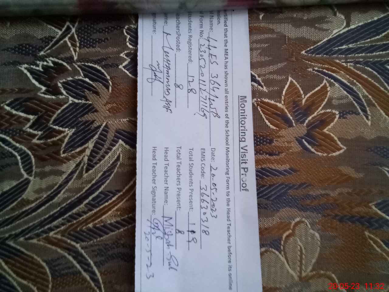 | Certified that this School was Inspected by the Undersigned MEA/DMO Today and the Information Stated Above is as Per Record. | |||||