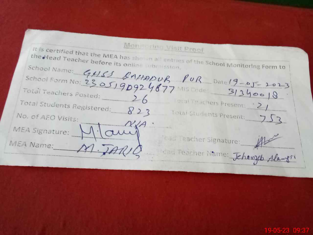 | EMIS Code: 31340018 | Name of School: GHSS CHOK BAHADAR PUR | |||
