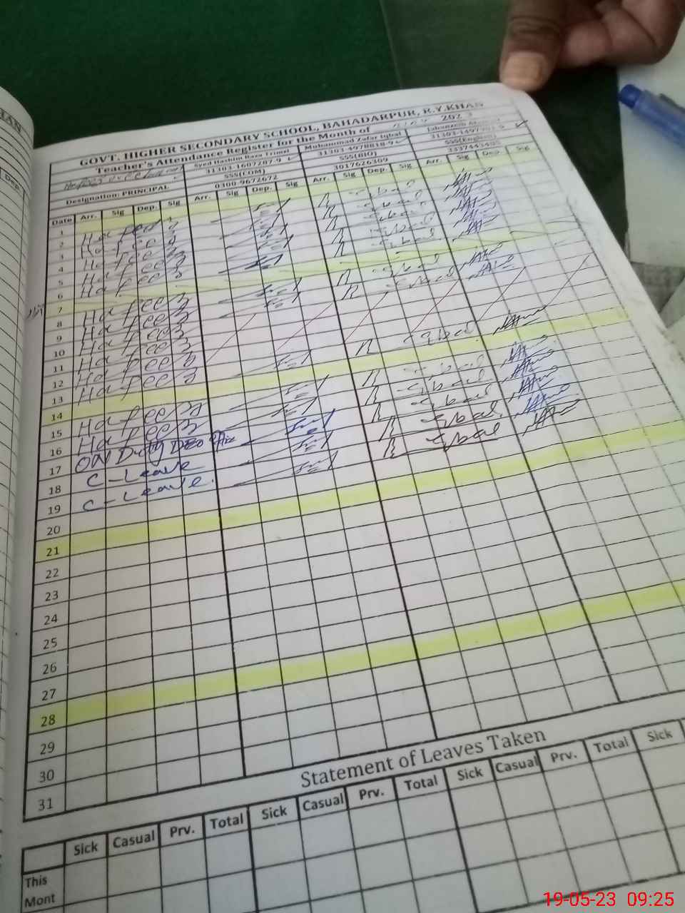 | 31**** | Mu**** Ri**** Sh**** | Contract | 0 | 11 | 0 | 0 | 0 | 0 | 0 | 0 | 0 | Exam Duty | |