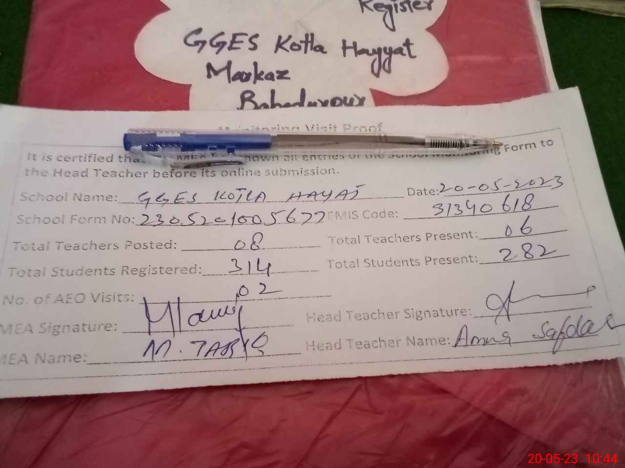 | EMIS Code: 31340618 | Name of School: GGES KOTLA HAYAT | |||