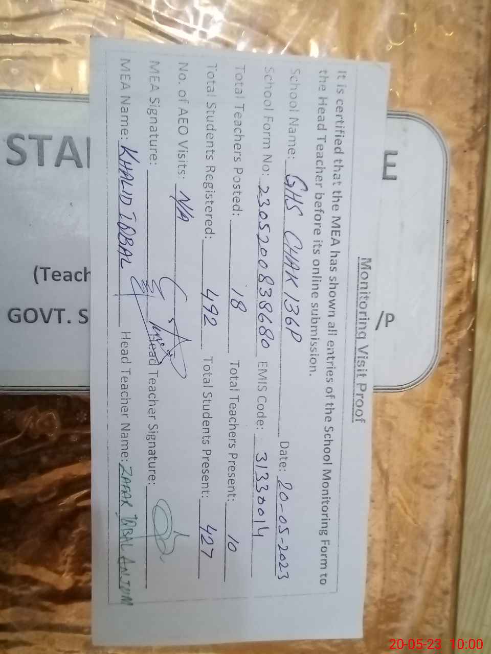 | EMIS Code: 31330014 | Name of School: GHS CHAK NO.136 P | |||