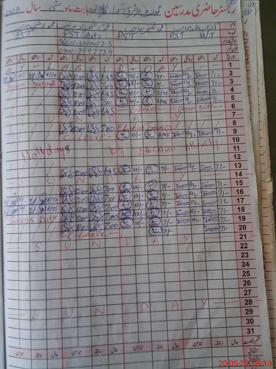 | 36**** | Kh**** Sh**** | PST | Regular | 1 | 0 | 0 | 0 | 0 | 0 | 0 | 0 | 1 | Casual |