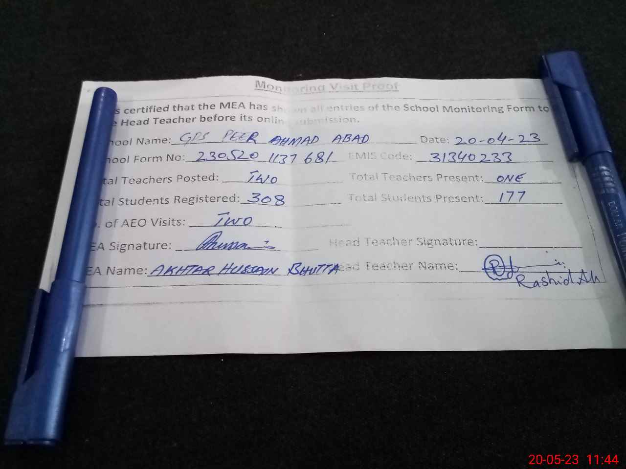 | EMIS Code: 31340233 | Name of School: GPS PEER AHMAD ABAD | |||