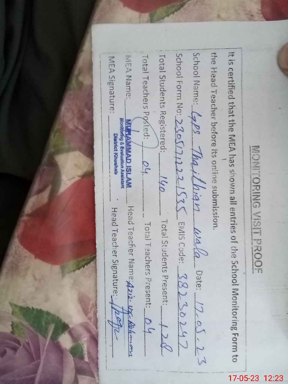 | EMIS Code: 38230247 | Name of School: GPS THAITHIAN WALA | |||