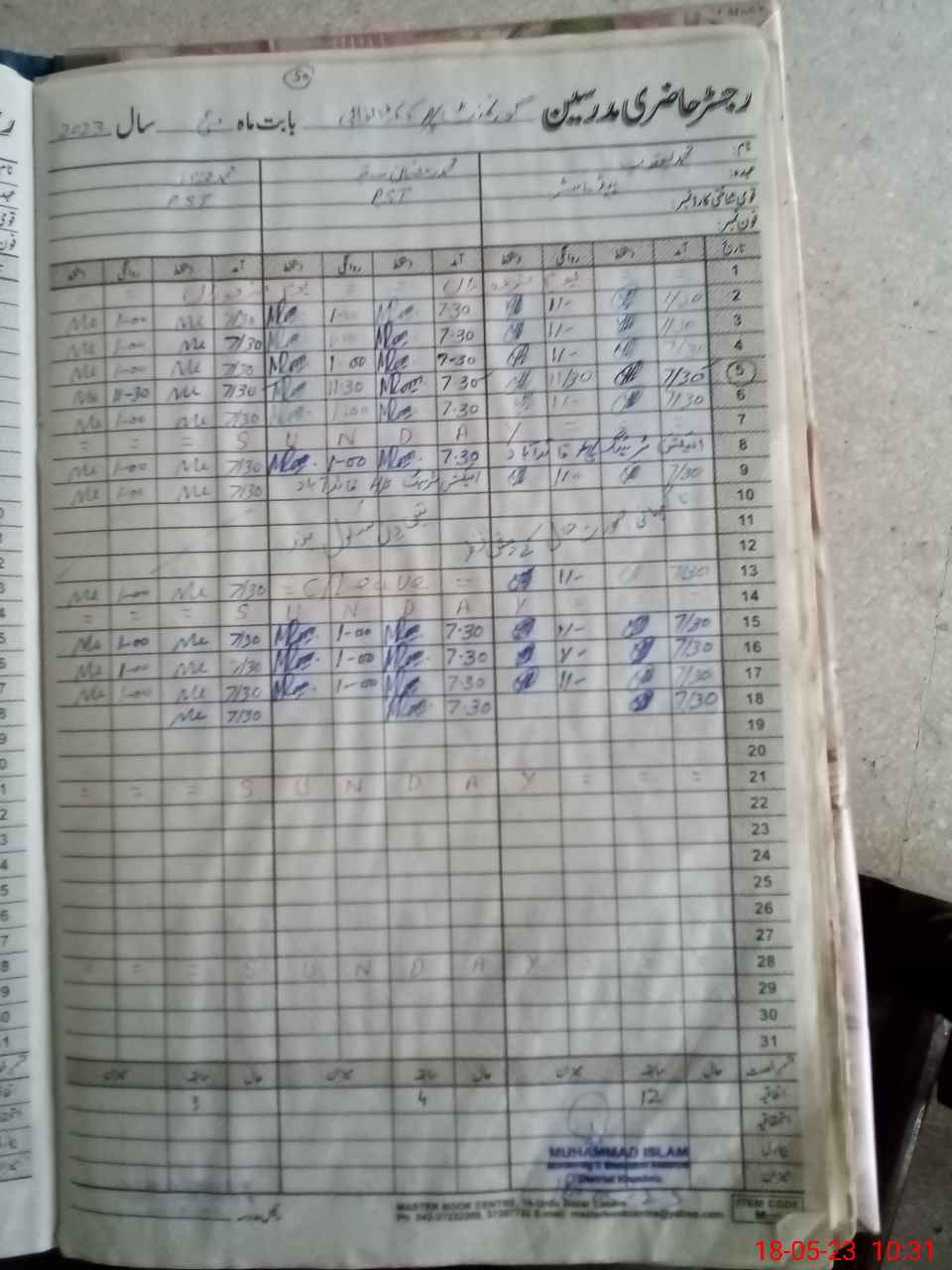 | CNIC | Full Name | Designation | R/C | Absence During Last Calender Month |