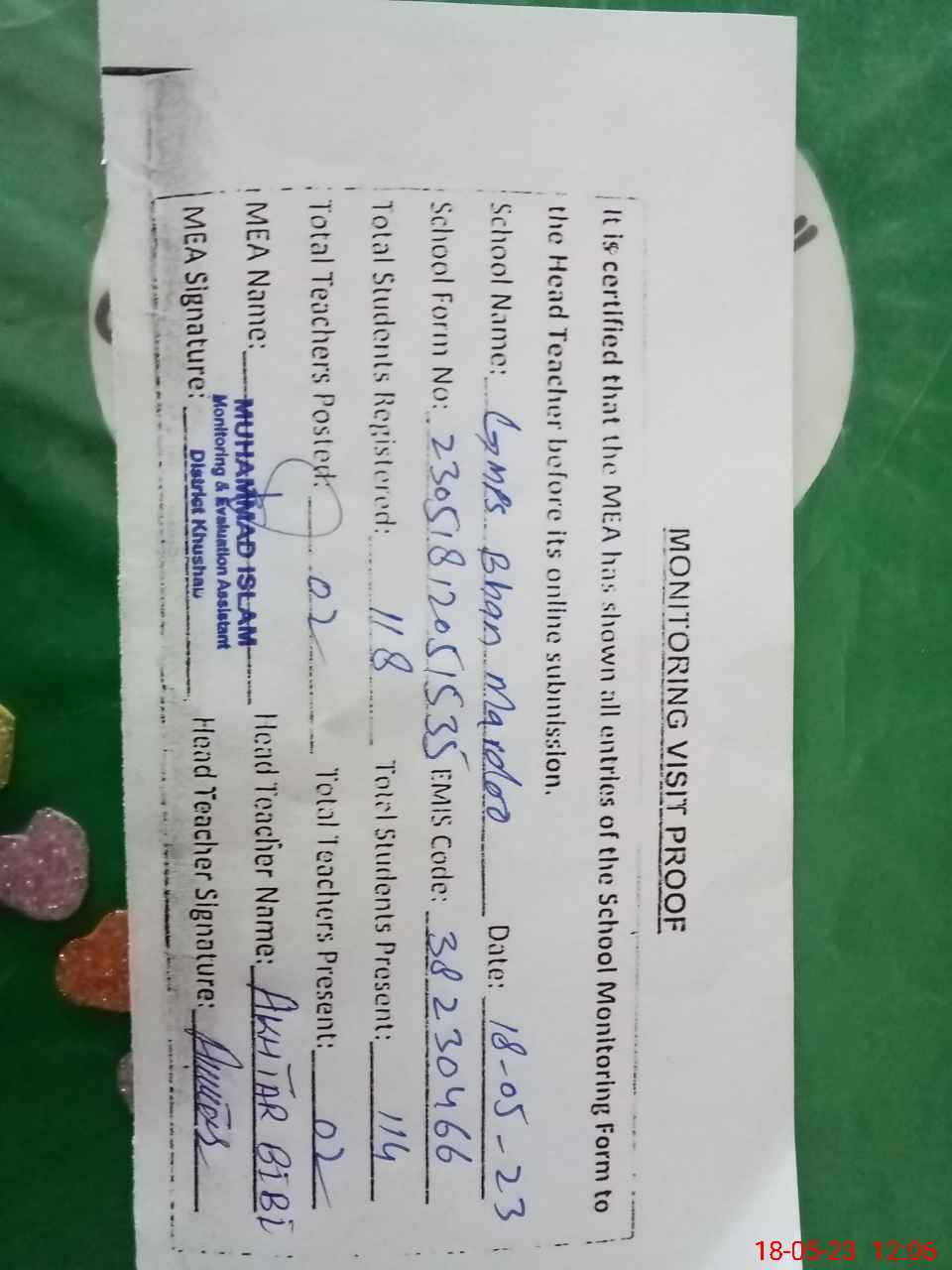 | EMIS Code: 38230466 | Name of School: GMPS BHAN MARDOO | |||