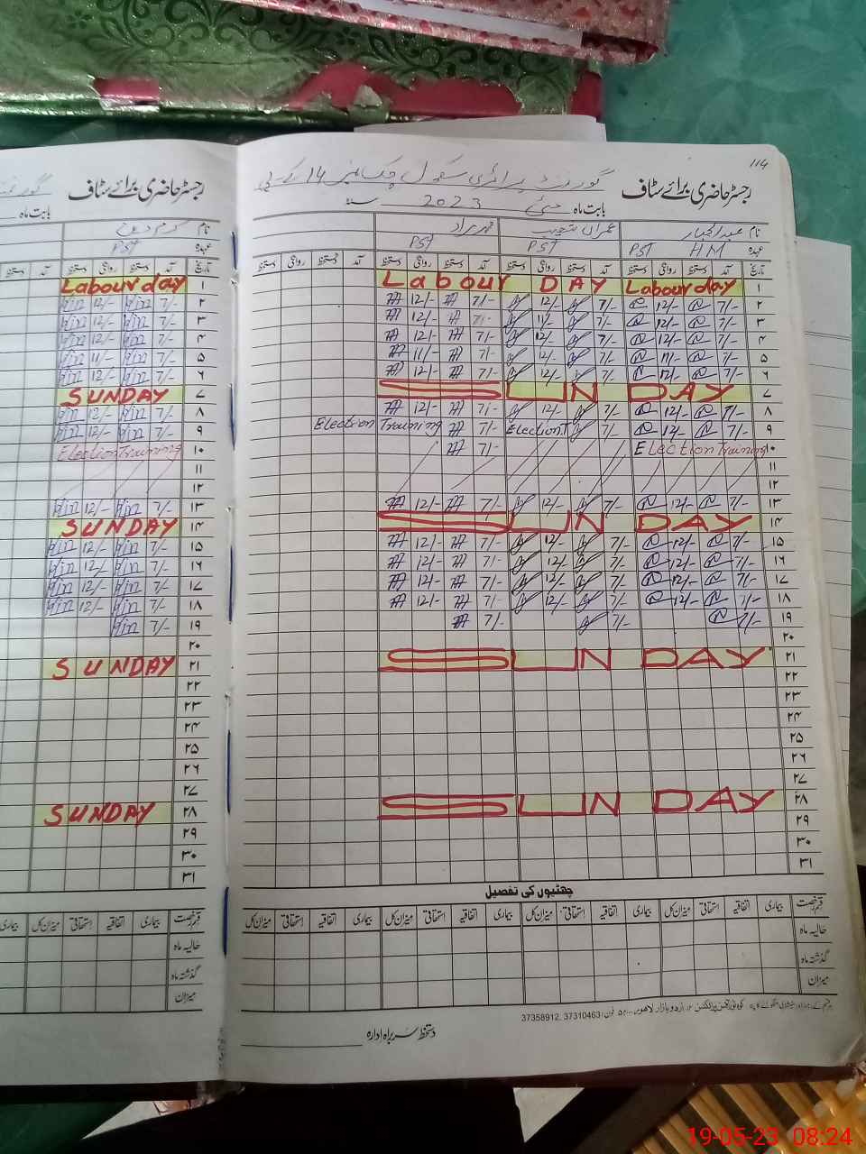 | CNIC | Full Name | Designation | R/C | Absence During Last Calender Month |